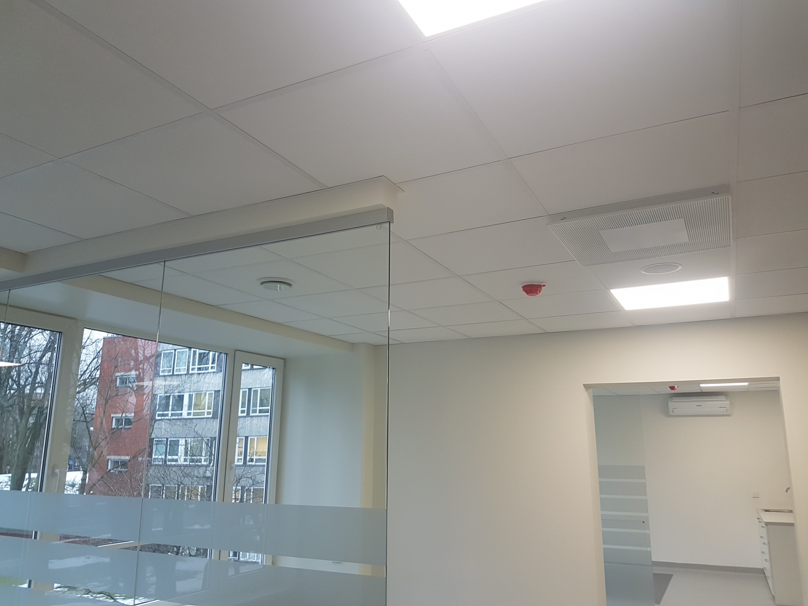 * Ventilācijas sistēmas ierikošana (WOLF gaisa apstrādes iekārta, PEGO gaisa mitrināšanas iekārta, automatika, gaisa vadu sistēmas montaždarbi)